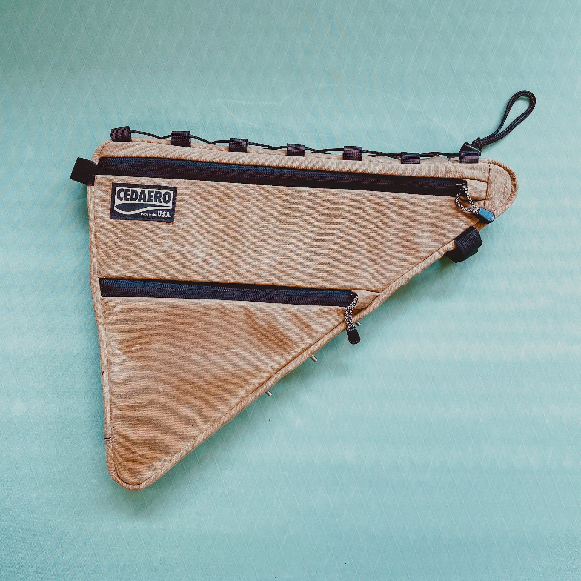 We offer three exterior fabric options - 1000D Cordura nylon, RX30 X-pac, and 15oz waxed canvas. All of these options are weather-resistant and extremely hard-wearing. RX30 is the lightest weight. 1000D Cordura is mid-weight and has proven its resistance to hard use for decades. 15oz waxed canvas patinas beautifully with age, eventually telling the stories of adventures past (but it shouldn’t be run through the washing machine). For a deeper dive into our fabric options, look HERE!